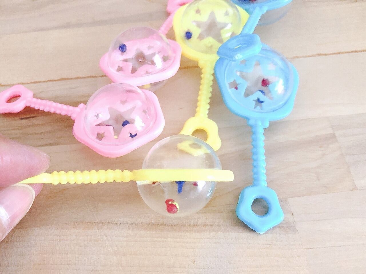 星のガラガラ 1個です。 そのまま遊んでも、オモチャのパーツとしても使えます! カラーは画像でご確認ください。 ★送料や注意点、発送の流れなどはABOUTのページに記載しておりますので、必ずご確認の上ご注文くださいますようお願いいたします。